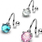 Piercing nombril spirale Or 14 carats à coeur zirconium