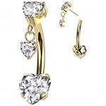 Piercing nombril Titane à zirconiums en coeurs à pendentif (push-in)