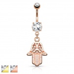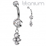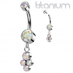 Piercing nombril Titane disques zirconiums à pendentif - Rose