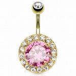 Piercing nombril titane G23 à disques sertis - Rose (filetage interne)