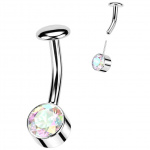 Piercing nombril Titane push-in à zirconium bleu aqua et embout disque