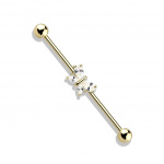 Ce piercing industriel est parfait pour celles et ceux qui cherchent à se démarquer avec subtilité. La barre droite traverse joliment l'oreille, créant une ligne fluide et harmonieuse. Pour ajouter une touche de glamour, une étoile ornée d'une pierre scintillante est fixée sur l'un des côtés du bijou, reflétant délicatement la lumière pour captivier tous les regards.