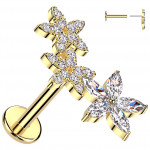 Piercing oreille push-in doré à branche luxuriante ornée de feuilles de zirconiums