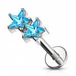 Ose te distinguer avec ce duo d'étoiles qui capte la lumière sous tous les angles. Conçu pour être porté à la fois comme labret ou piercing de cartilage, il t'offre une polyvalence inégalée. Que tu choisisses de l'associer à tes autres bijoux ou de le porter en solitaire, ce piercing deviendra rapidement une pièce maîtresse de ton look.