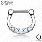 Piercing septum acier à cinq Opales pourpres asymétriques