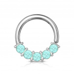 L'acier, robuste et résistant, garantit que ton piercing restera intact et éclatant au fil du temps. Les opales, délicatement incrustées, ajoutent une dimension de luxe et de raffinement à l'ensemble. Que tu sois un adepte des accessoires minimalistes ou que tu cherches à ajouter une pièce forte à ta collection, ce piercing septum est un choix incontournable.