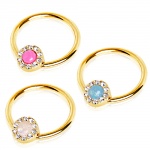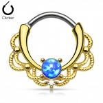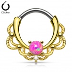 Piercing septum doré à design cordage sertie d'une Opale blanche