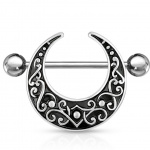 Plonge au coeur de l'élégance avec ce bijou unique, où l'acier inoxydable 316L s'allie à la splendeur de l'or pour célébrer ta féminité. L'arc doré fleuri, symbole d'un jardin opulent et baigné de lumière, entoure délicatement ton mamelon. Chaque fleur incrustée de zirconium étincelant capture la beauté d'une rosée scintillante sous les premiers rayons du soleil, tandis qu'une étoile en strass, suspendue avec grâce, évoque la magie d'une nuit étoilée. Ce bijou pour le sein, par sa composition et son design, te transporte dans un univers où chaque détail est une célébration de la féminité.