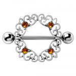 Au coeur de ce design sensuel se trouve le bouclier en forme de coeur, un détail subtil qui capte immédiatement le regard. Cette pièce ne se contente pas d'être un simple bijou de poitrine; elle incarne une véritable déclaration d'intimité et d'expression personnelle. La barre barbell droite, agrémentée à chaque extrémité d'une sphère brillante, concentre l'attention sur ce bouclier coeur, transformant ton mamelon en une oeuvre d'art. C'est un choix audacieux pour celles qui désirent refléter leur passion et leur individualité.