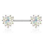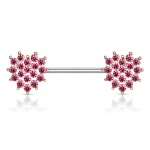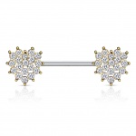 L'attrait majeur de ce bijou réside dans sa conception délicate, qui transforme le mamelon en une véritable oeuvre d'art. Les deux coeurs symétriques, ornés de zirconiums scintillants, créent un éclat sans égal, captant la lumière pour laisser un sillage brillant à chaque mouvement. Cette parure évoque une couronne de fleurs cristallines autour du mamelon, rehaussant la poitrine d'une touche de glamour discret mais indéniable.