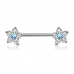 Piercing téton à embouts fleur zirconium et opale rose