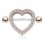Il s'agit aussi d'un bijou qui parle à l'intimité et à l'élégance. Le design ouvert du coeur crée un effet d'invitation et de mystère, tandis que la disposition des strass en cercle autour du mamelon évoque une douce intimité. Cette pièce est conçue pour celles qui cherchent à ajouter une touche de sophistication intime à leur collection de bijoux, marquant ainsi un équilibre parfait entre séduction et finesse.