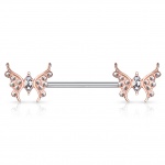 Piercing téton cuivré à coeurs pavés de zirconiums