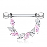 Piercing téton double éventail de cristaux - Rose