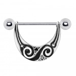 La combinaison de couleurs, avec la tige en acier inoxydable 316L de couleur grise métal contrastant avec les embouts décoratifs noirs en alliage de zinc, apporte une harmonie visuelle qui sublime la poitrine. Ce contraste participe à rehausser la sensualité féminine, en faisant de ce bijou pour mamelon un accessoire discret mais remarquable, idéal pour celles qui aiment les détails fins et symboliques. Son aspect polyvalent lui permet de s'adapter à différents styles, qu'ils soient audacieux ou plus réservés.