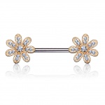 Ce piercing n'est pas juste un accessoire, c'est une oeuvre d'art destinée à embellir ta poitrine. Imagine la façon dont chaque strass s'anime sous l'éclairage, reflétant la lumière pour illuminer ton sein et mettre en valeur la courbe de ton mamelon. La symbolique des fleurs, empreinte de féminité et de beauté naturelle, fait écho à la singularité de chaque femme. Avec son design soigné et sa symétrie parfaite, ce bijou vient encadrer ta féminité, rendant chaque geste plus sensuel, chaque instant plus intime.