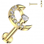 Piercing Titane doré push-in à zirconium en amande et base étroite (narine, tragus, hélix...)